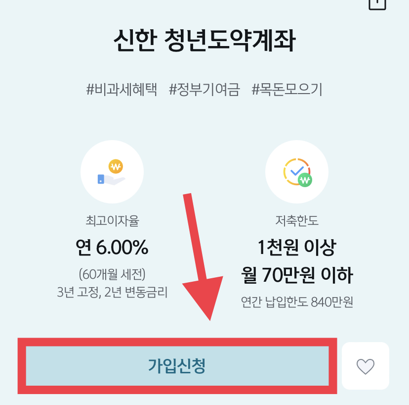 기본이자율: 가입일 당시 영업점 및 홈페이지에 고시된 신한 청년도약계좌의 기본이자율입니다.