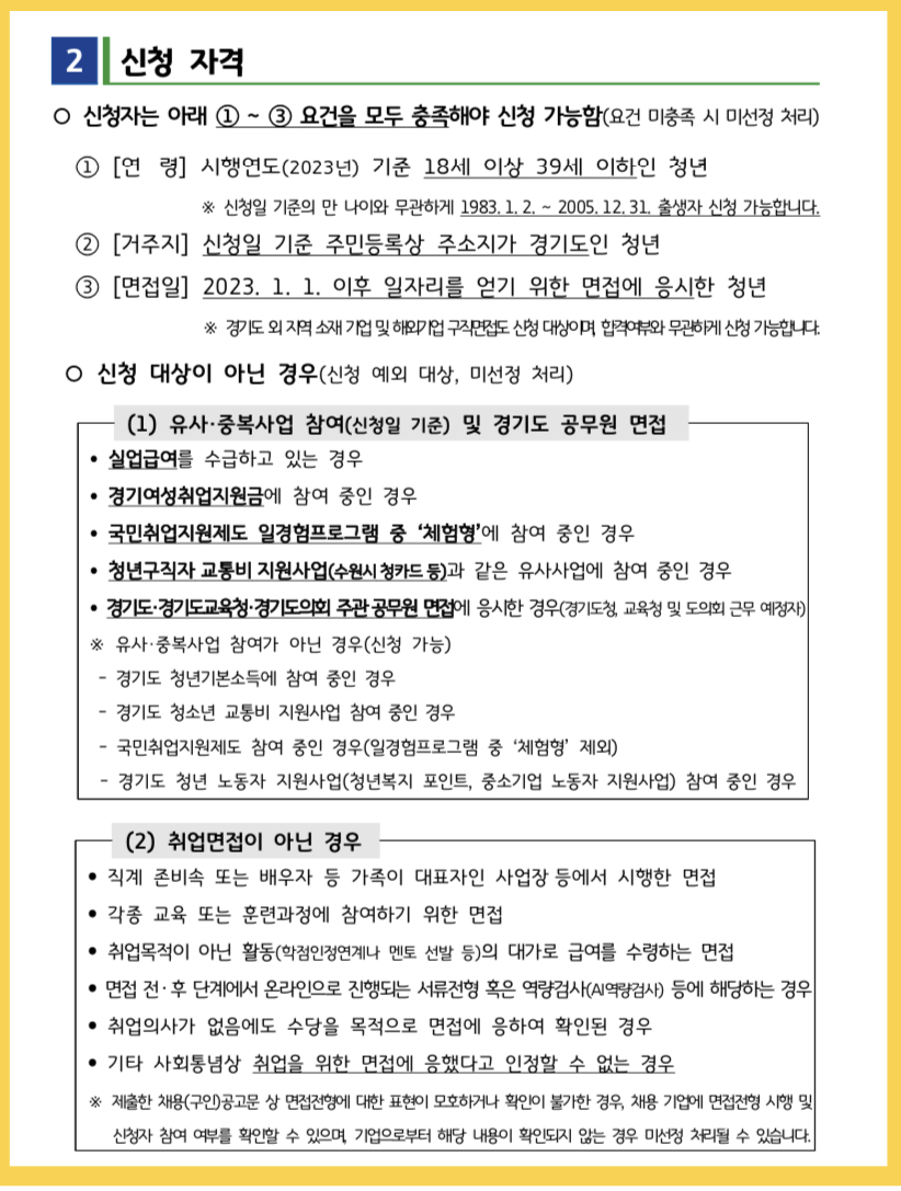 2. 경기도 청년면접수당 신청자격