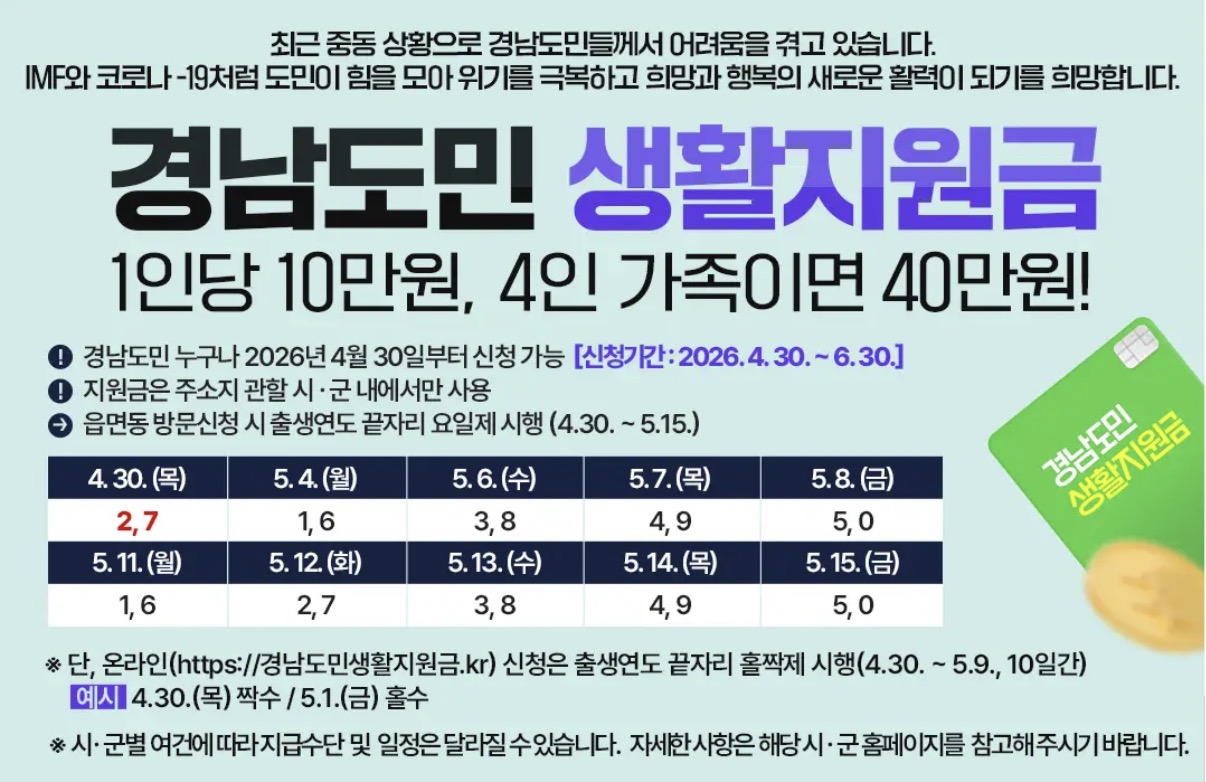이번 지원은 정부의 고유가 피해 지원금과는 별도로 추진되는 경남형 민생안정 대책입니다.