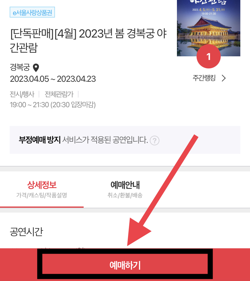 2. 경복궁 야간개장 인터넷예매 신청방법