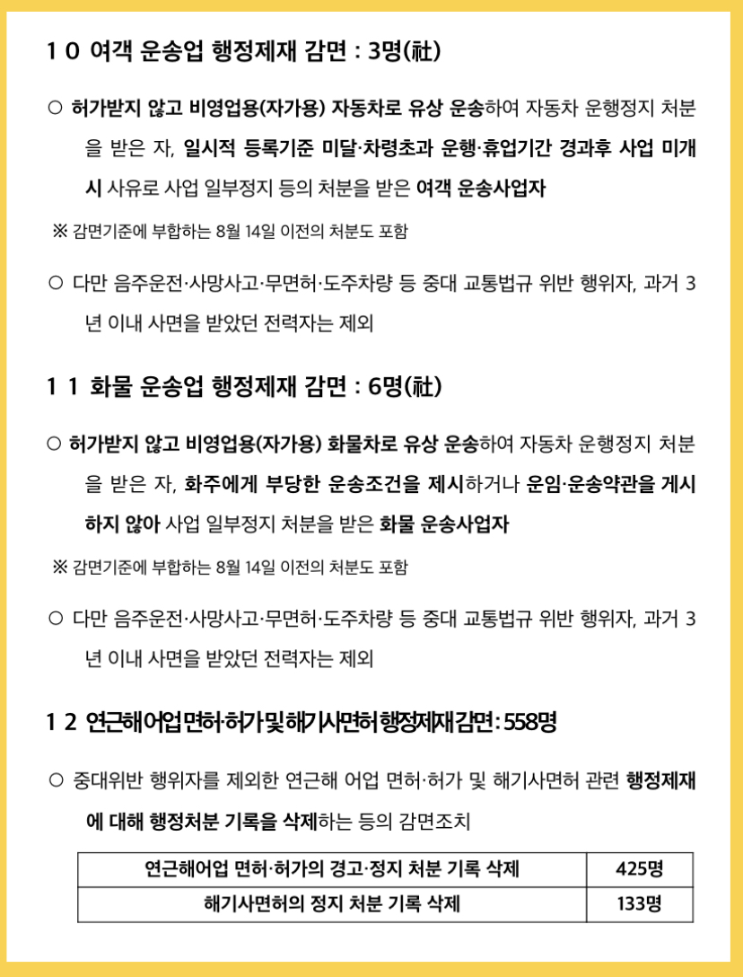 ► 여객·화물 운송업 행정제재 특별감면 : 9명(社)