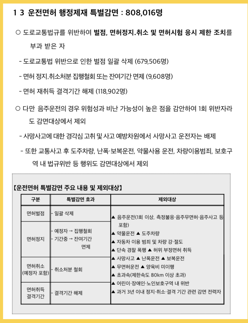 ► 운전면허 행정제재 특별감면 : 808,016명