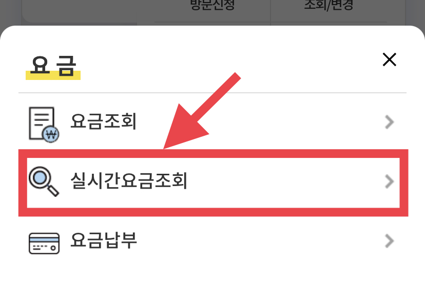 4. 관할사이트 이동되면 메인화면에 요금조회 버튼 클릭