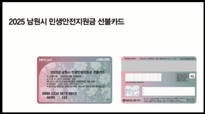 남원시 민생안정지원금은 무기명 선불카드로 지급되며 남원사랑상품권 가맹점에서만 사용할 수 있어 영세 소상공인의 경영안정에 보탬이 될 것으로 보입니다.