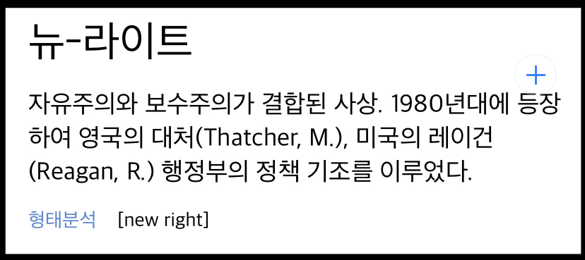 뉴라이트는 일반적으로 신우익으로 표현하며, 신우파 이념에 속하는 신자유주의new freedom와 신보수주의neo-conservatism로 대체하여 사용하는 경우도 있습니다.