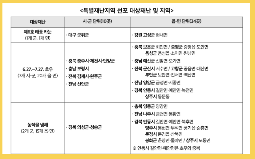 * 자세한 특별재난지역 지원 내용은 행정안전부 홈페이지에서 확인하실 수 있습니다.