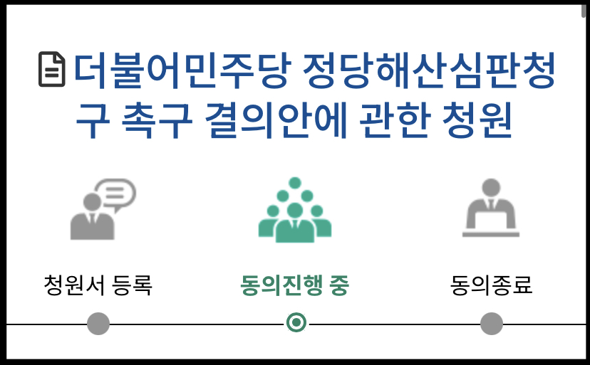 더불어민주당 정당해산심판 청구 촉구 결의안에 관한 청원은 현재 국회 국민동의청원 사이트에 올려져 있습니다. 아래 링크를 확인하시기 바랍니다.