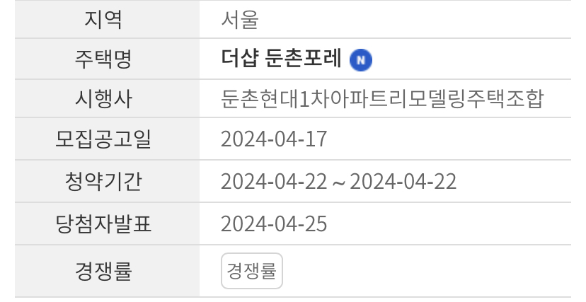 - 동 주택에 당첨되어 계약을 체결한 분 또는 예비입주자 중 추가입주자로 선정된 분은 청약 신청이 불가합니다.
