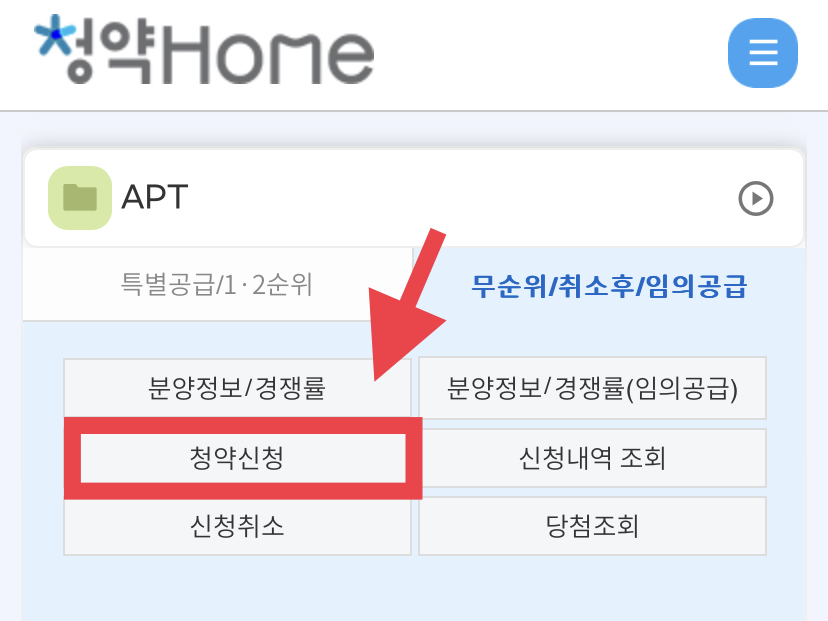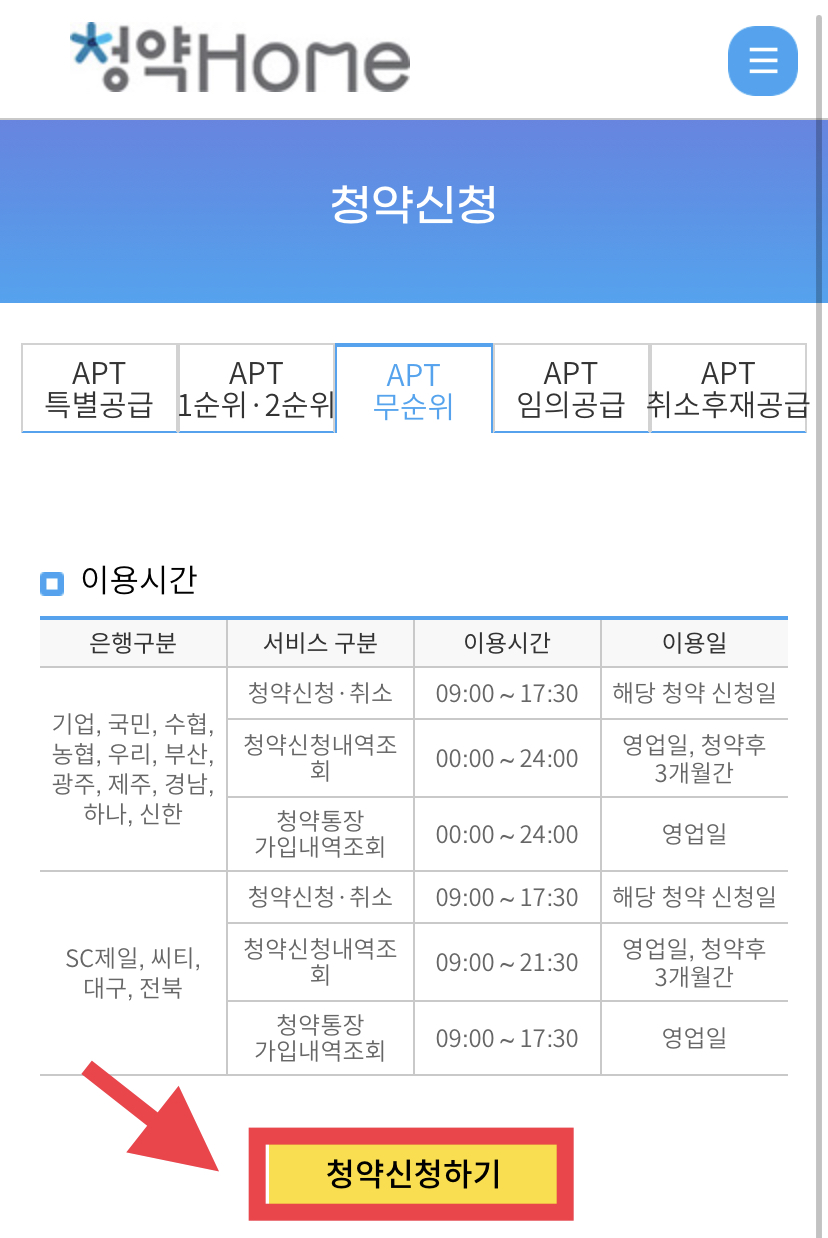 2. 청약신청에 들어오셔서 청약신청하기를 눌러줍니다.