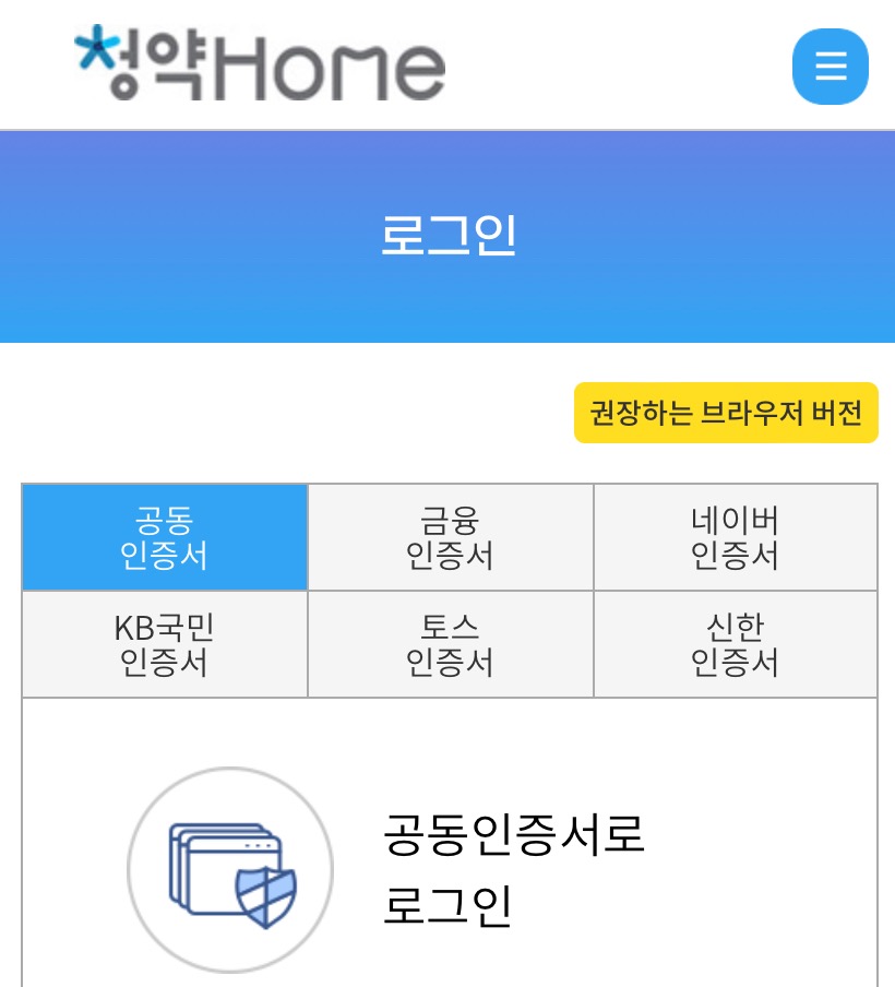 3. 공동인증서, 금융인증서, 네이버인증서, 토스인증서 등으로 로그인을 하신 후 청약을 진행하시면 됩니다.