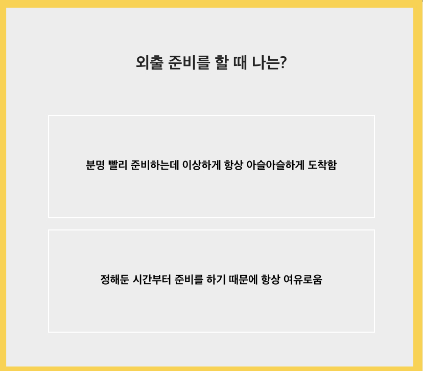 외출을 준비할 때 나는 이상하게도 빨리 준비해서 나왔는데 아슬아슬하게 도착하는 경우가 종종 있습니다. 약속시간 지키는 건 매우 중요하기 때문에 미리 일찍 준비는 하는데 이상한 일이죠.