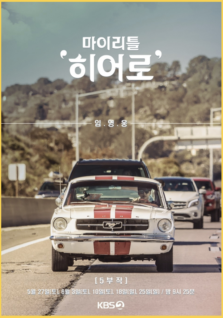 마이 리틀 히어로는 5월 27일 밤 9시 25분에 첫 방송됩니다. 마이 리틀 히어로는 총 5부작 리얼리티 예능으로 나머지 회차는 2회가 6월 3일, 3회는 6월 10일, 4회가 6월 18일, 5회는 6월 25일에 방송됩니다. 출연진은 임영웅 단 한 명 뿐입니다. 좀 더 길게 제작되어 나오면 좋았을텐대. 뭔가 아쉽습니다.