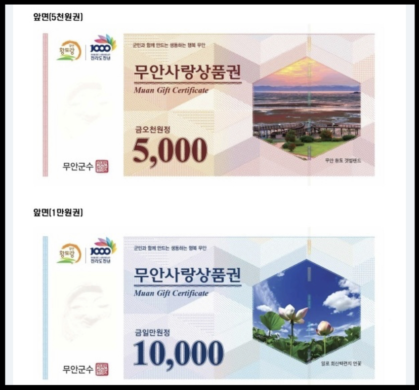 • 지원금액: 1인당 10만원(무안사랑상품권)