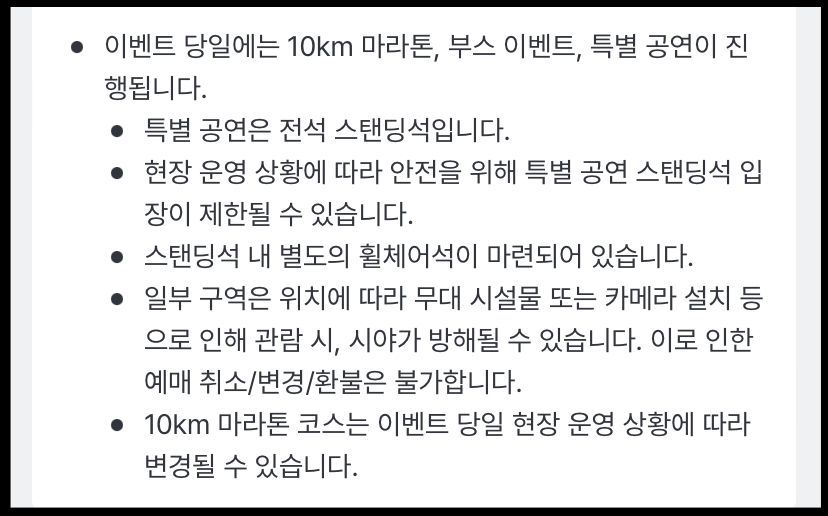 - 현장 운영 상황에 따라 안전을 위해 특별 공연 스탠딩석 입장이 제한될 수 있습니다.