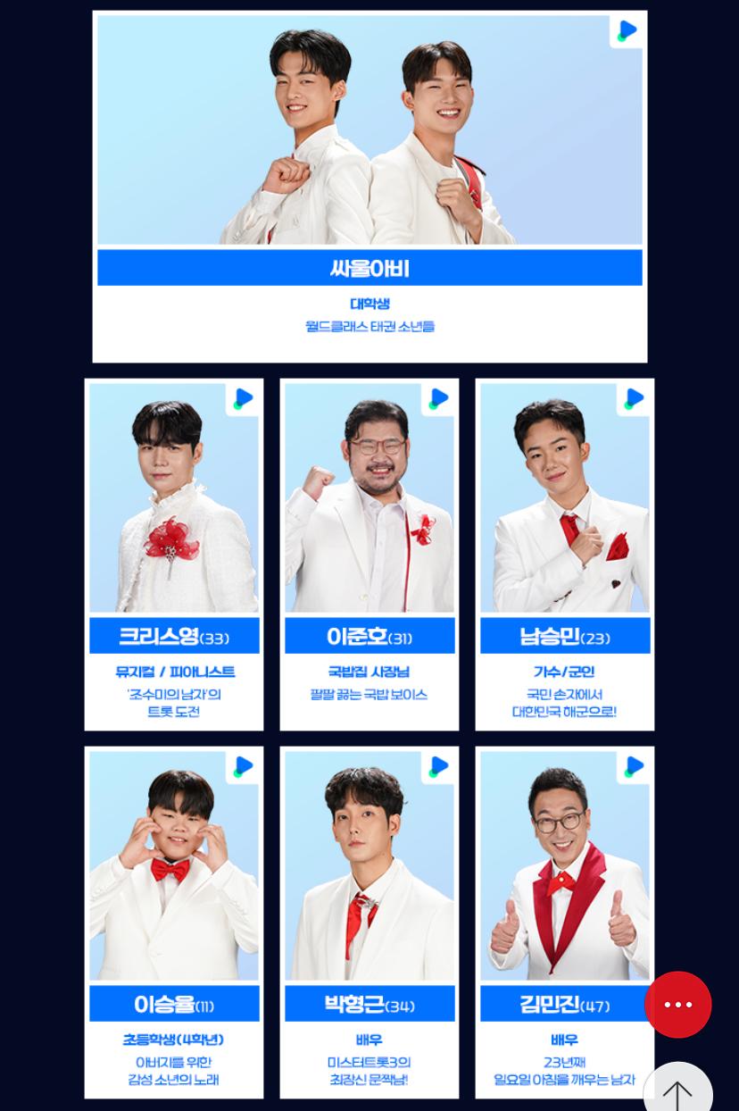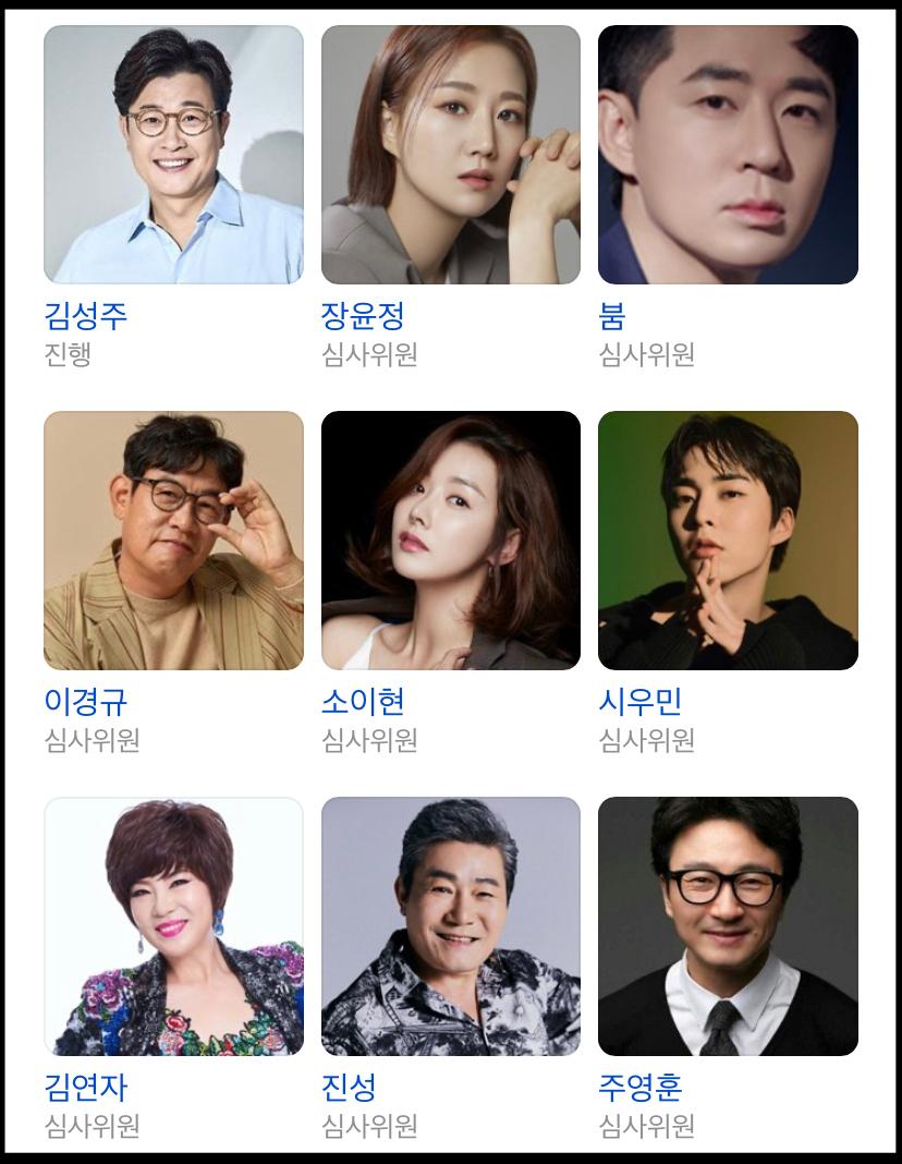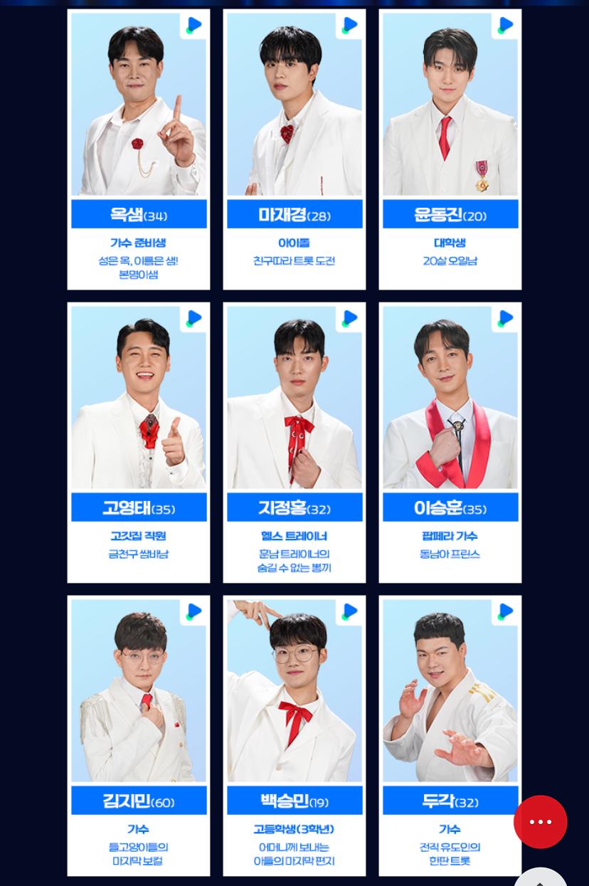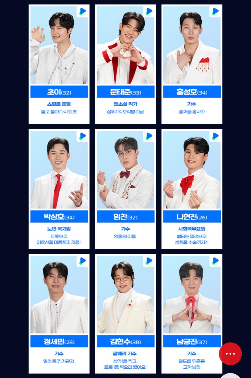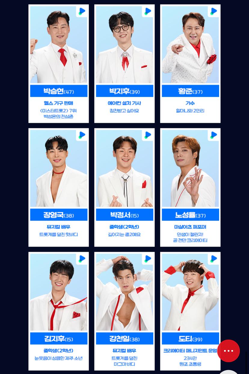 개그우먼 이은지, 가수 장민호, 영탁, 김희재, 이찬원, 정동원, 안성훈, 박지현, 나상도, 진욱, 박성온입니다.