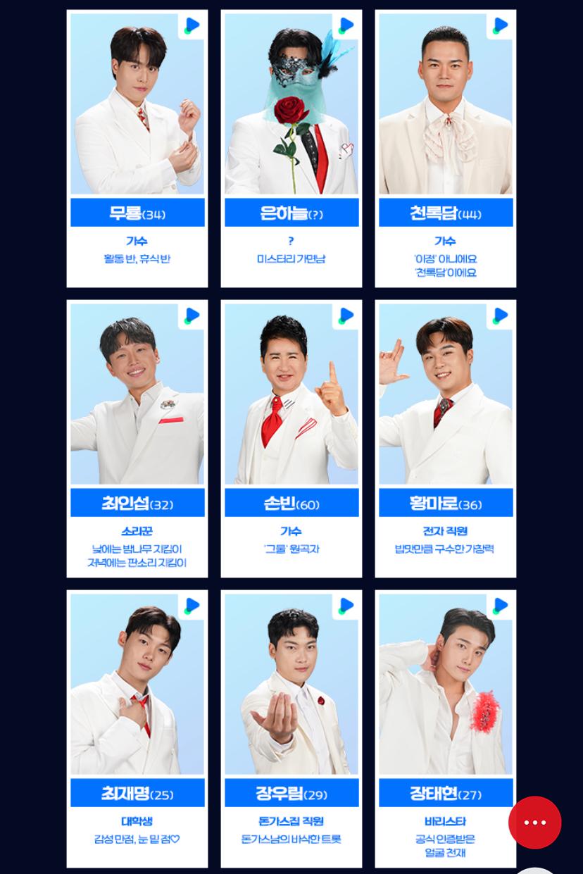 김용빈, 손빈아, 신인선, 추혁진, 춘길 등 현역 트로트 가수를 비롯해 가면을 쓴 정체불명의 출연자, 김홍남, 천록담 등 부캐릭터로 출사표를 던진 참가자들도 눈길을 끕니다.
