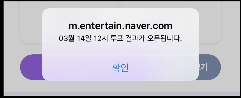 5. 팝업창으로 3월 14일 12시에 투표 결과가 오픈된다는 메시지를 확인하실 수 있습니다.