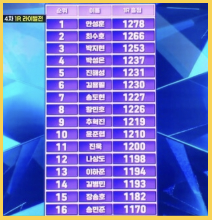 준결승전인 작곡가 신곡 미션에서는 대한민국 대표 스타 작곡가들의 따끈따끈한 신곡을 참가자들이 한 곡씩 선택해서 부르는 방식이었는데요. 평가 기준은 마스터 점수 1200점, 실시간 문자 투표 점수 800점 총 2000점 만점이었습니다.
