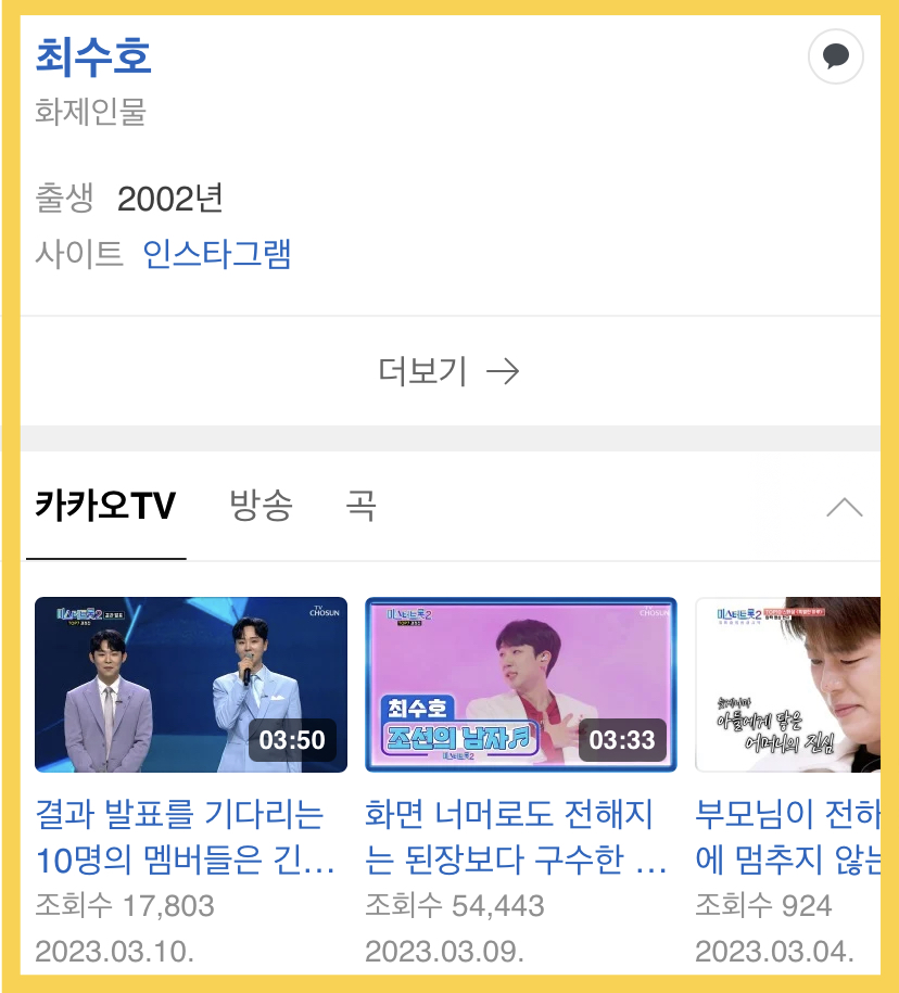 | 미스터트롯2 콘서트 일정 예매 출연진 (0) | 2023.03.05 |