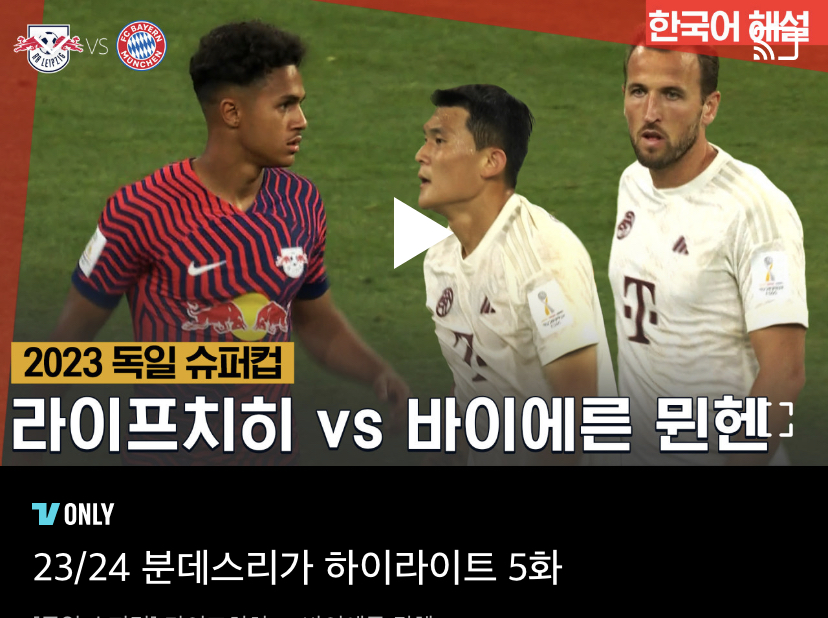 바이에른 뮌헨의 경기는 티빙에서 보실 수 있습니다. 8월 28일(월) 오전 0시 30분에는 FC 바이에른 뮌헨과 FC 아우크스부르크의 대결이 생중계되는데요.