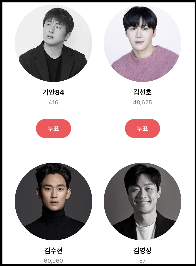 남자 인기상, 여자 인기상 각 4표 모두 투표를 완료하면