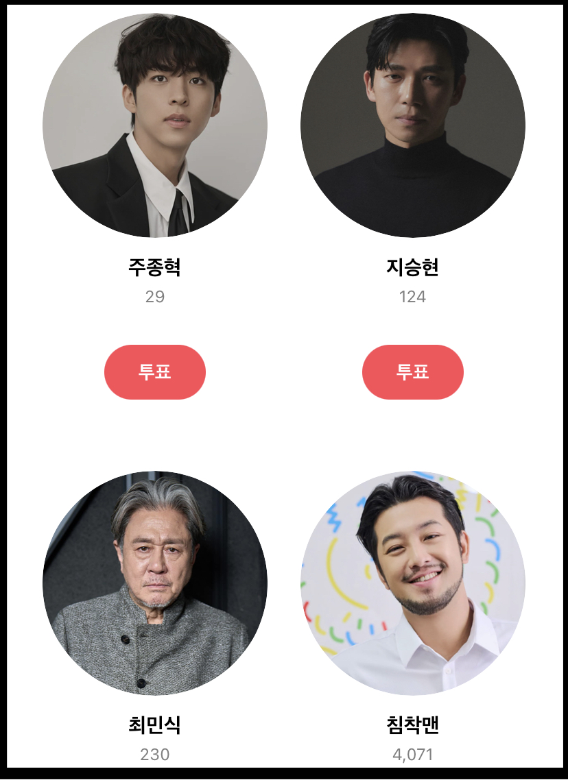 남자 인기상, 여자 인기상 각 4표 모두 투표를 완료하면