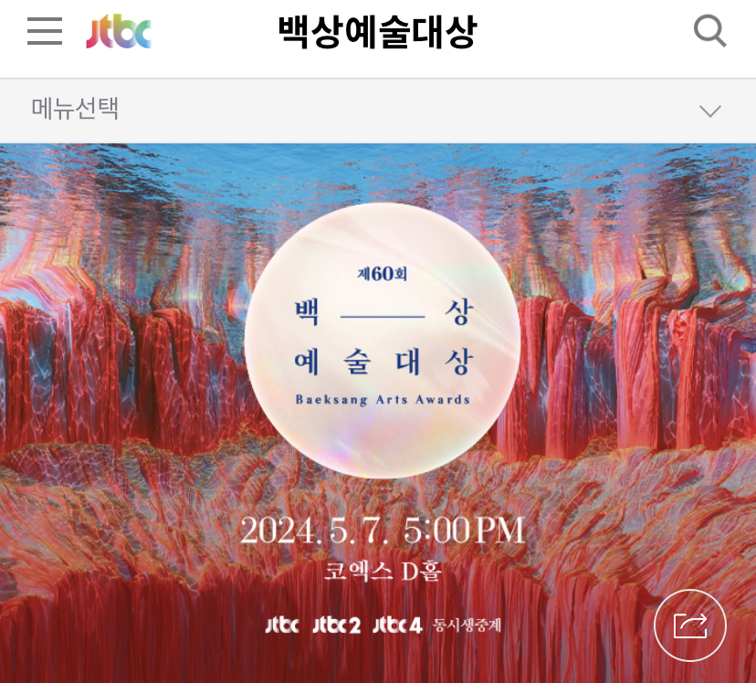 5월 7일(화) 17시~21시 백상예술대상 라이브에서 보실 수 있습니다.