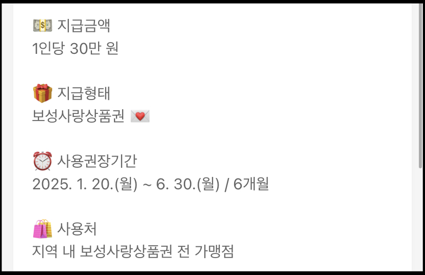 - 사용처: 지역 내 보성사랑상품권 전 가맹점
