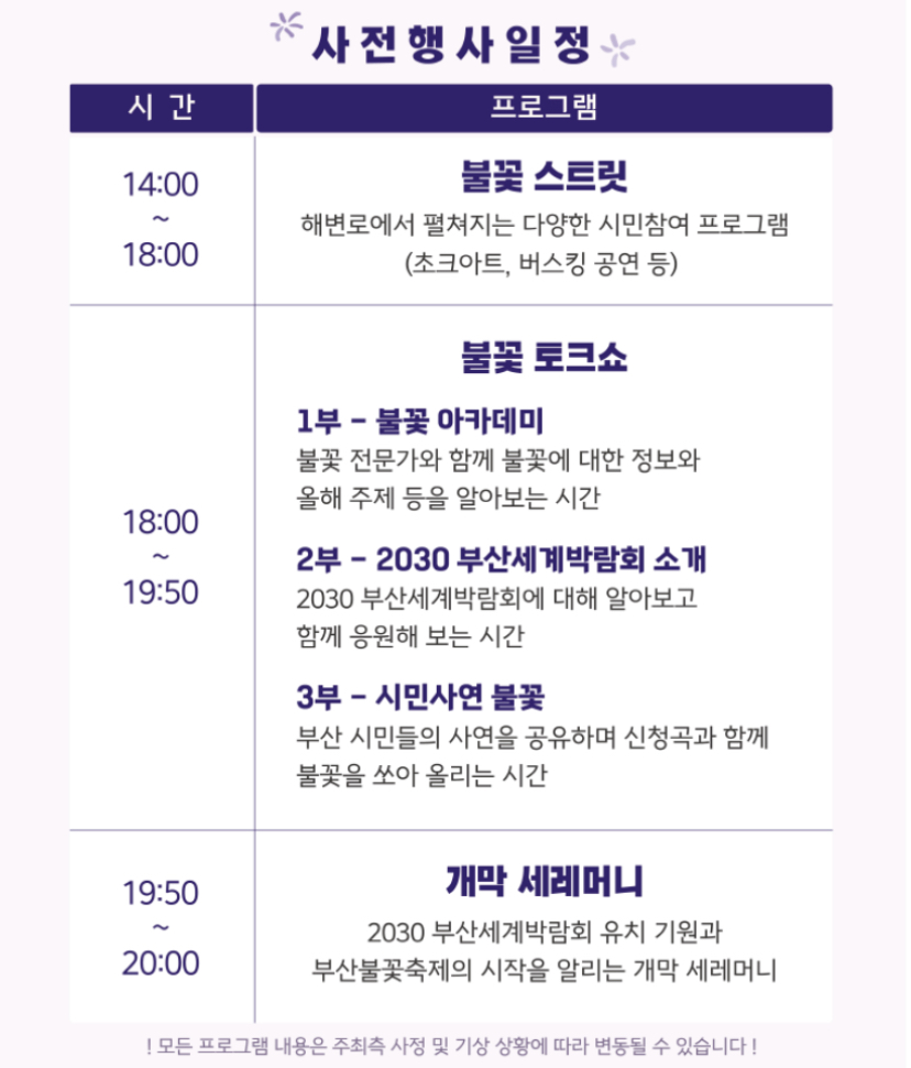 부산불꽃축제 일정 우천시 막차 실시간 라이브 보기