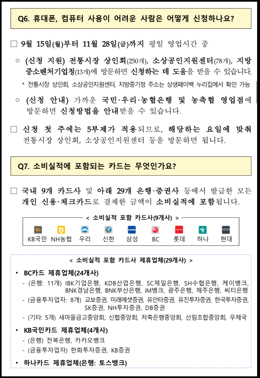 <상생페이백 신청 첫주 5부제 일정> 9월 15일(월) 5, 0 / 9월 16일(화) 6, 1 / 9월 17일(수) 7, 2 / 9월 18일(목) 9, 4 / 9월 19일(금) 9, 4 / 9월 20일(토)~11월 30일(일) 모두 신청가능