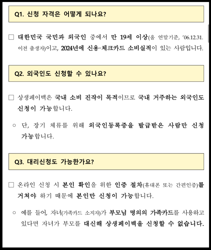 외국인도 신청할 수 있나요 상생페이백은 국내 소비 진작이 목적이므로 국내 거주하는 외국인도 신청이 가능합니다.