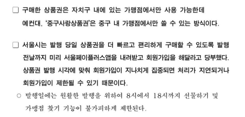 또한, 이번 서울사랑상품권 구매 시 시스템 부하를 최소화하여 시민들이 원활하게 상품권을 구입할 수 있도록 자치구별로 시간대도 다르게 편성되었습니다.