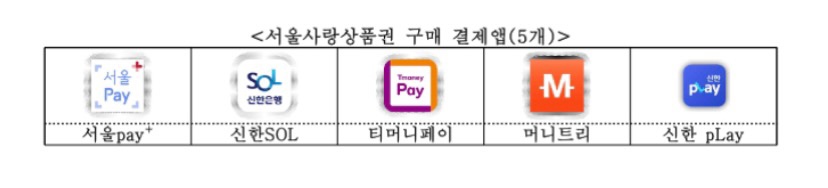 서울사랑상품권은 서울페이플러스(서울pay+)를 포함한 신한 SOL, 티머니페이, 머니트리, 신한 pLay 앱으로 총 5개 앱 중 하나에서 시·자치구 서울사랑상품권 및 자치구 서울사랑상품권을 구매할 수 있습니다. 구매한도는 월 50만원이며 보유 한도는 자치구당 150만원입니다.