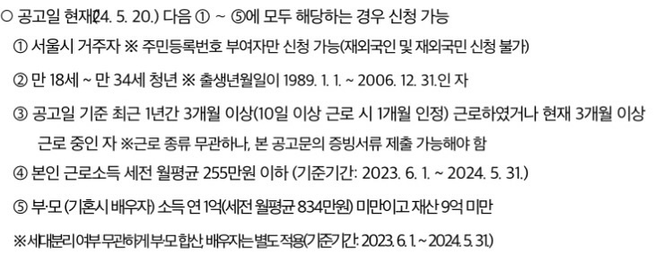 공고일 24. 5. 20에 다음 아래 내용 모두 해당하는 경우 신청 가능합니다.