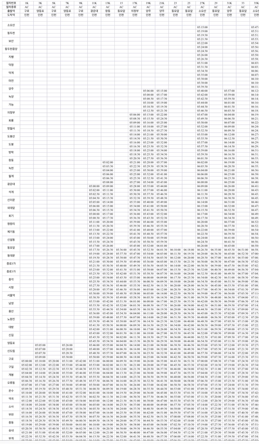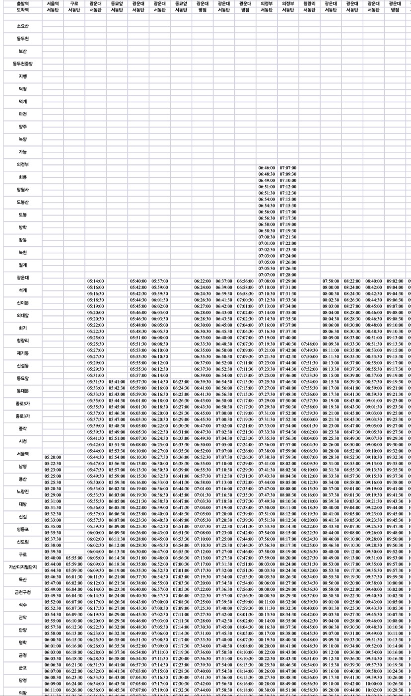 지하철 1~8호선의 변경된 시간표를 확인하세요.