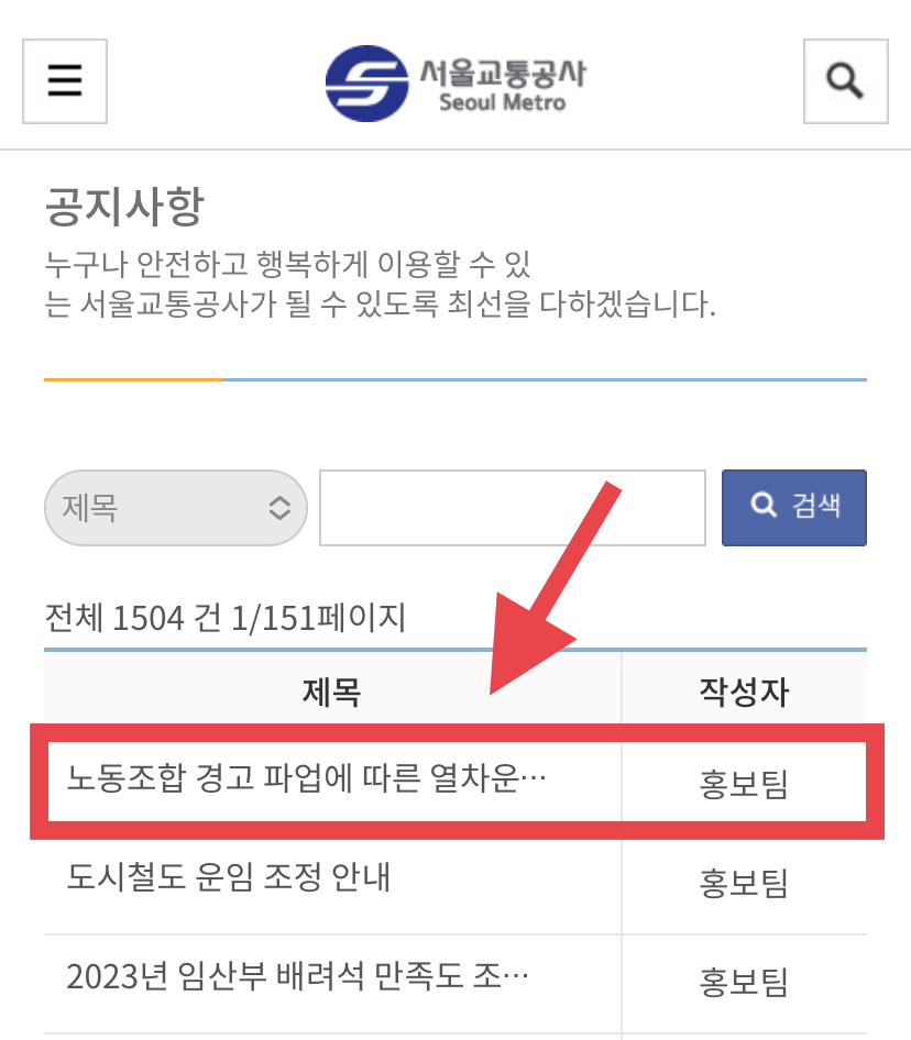 변경된 파업 시간표는 서울교통공사 홈페이지 게시판에서 확인하실 수 있습니다.