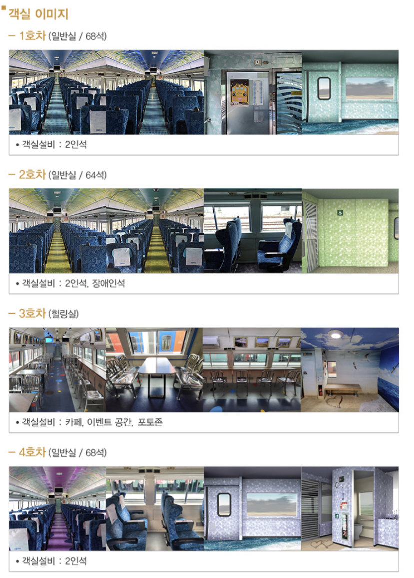 서해금빛열차는 열차에 9실 밖에 없어 예약하기가 상당히 어렵습니다.