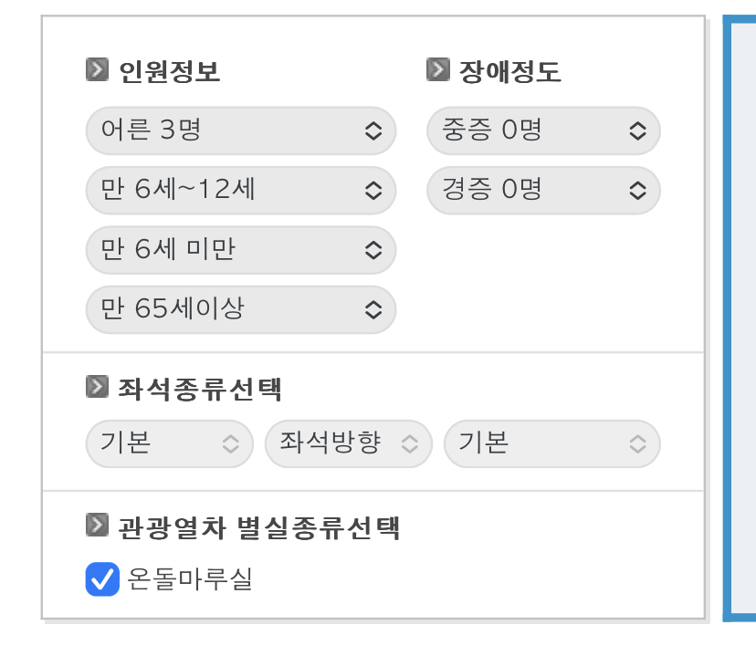 우선 좌석 조회를 하기 위해서는 일반 승차권이 아닌 관광열차로 들어가시면 예약이 가능합니다.