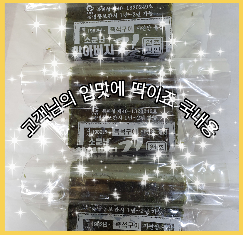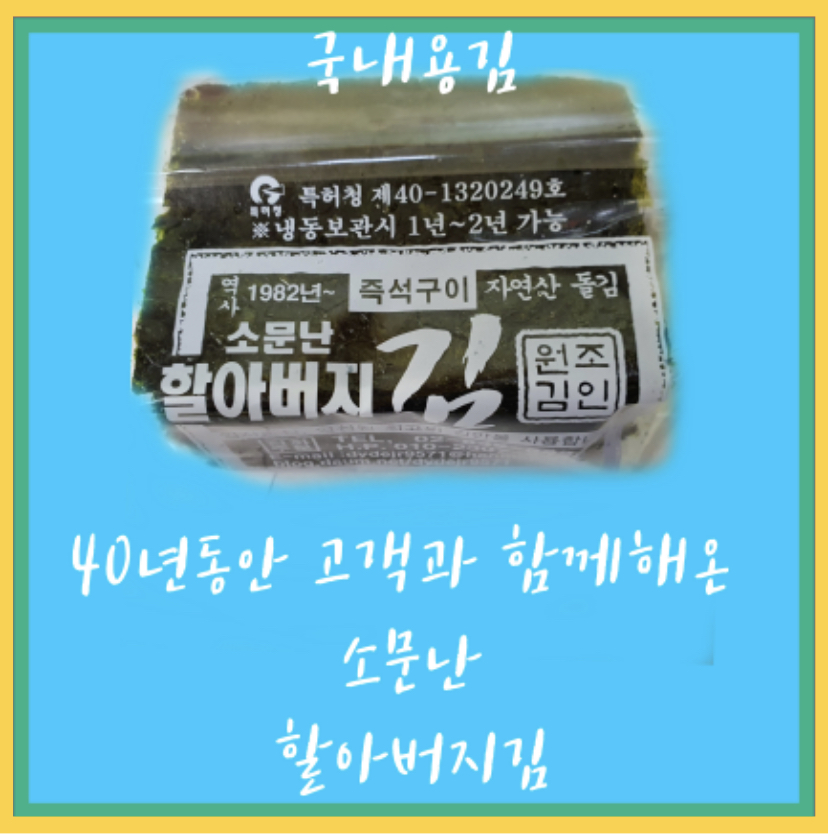 소문난 할아버지 김은 국내용과 해외용이 있습니다. 해외에 가는 분들은 해외용으로 주문하게되면 전문적으로 진공포장된 김을 받을 수 있게 되어있더라구요.
