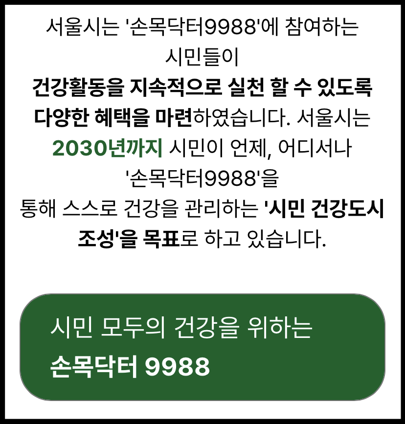 손목닥터9988은 서울시민 모두가 99세까지 88 팔팔하게 살 수 있도록 스마트워치와 전용 앱을 통해 건강 활동을 지원하는 서울형 헬스케어 프로그램입니다. 3월 4일부터 손목닥터 9988의 신규 참여자 모집을 하는데요. 그럼 손목닥터 9988 누리집 회원가입 신청방법에 대해 자세히 알아보겠습니다.
