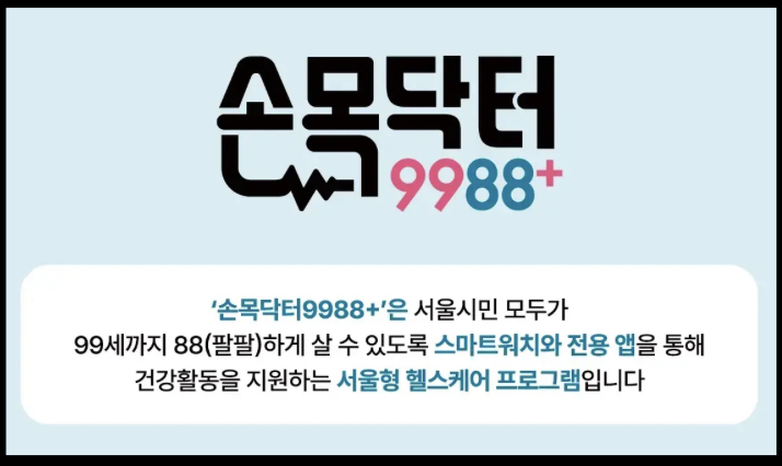 손목닥터 9988은 시민들의 건강한 걷기 습관을 정착시키기 위해 정보통신기술(ICT)을 활용한 스마트 헬스케어 사업입니다.