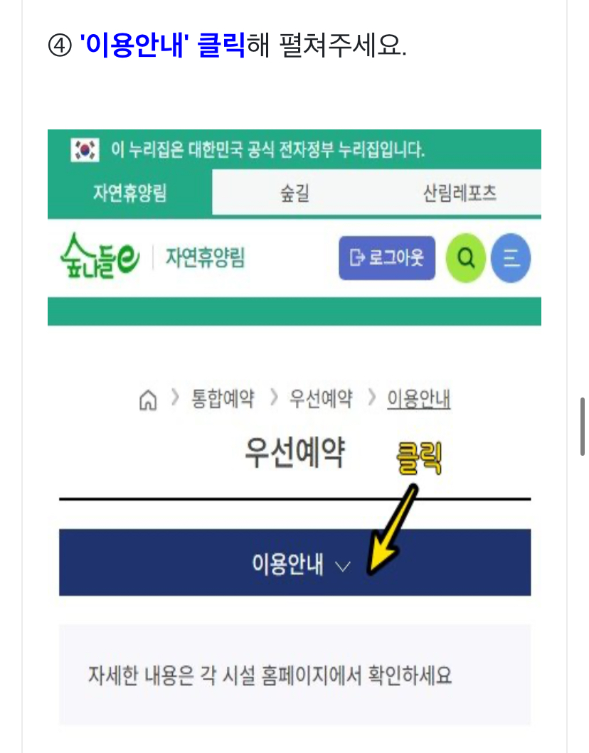 4. 이용안내릉 클릭해 펼쳐주세요.