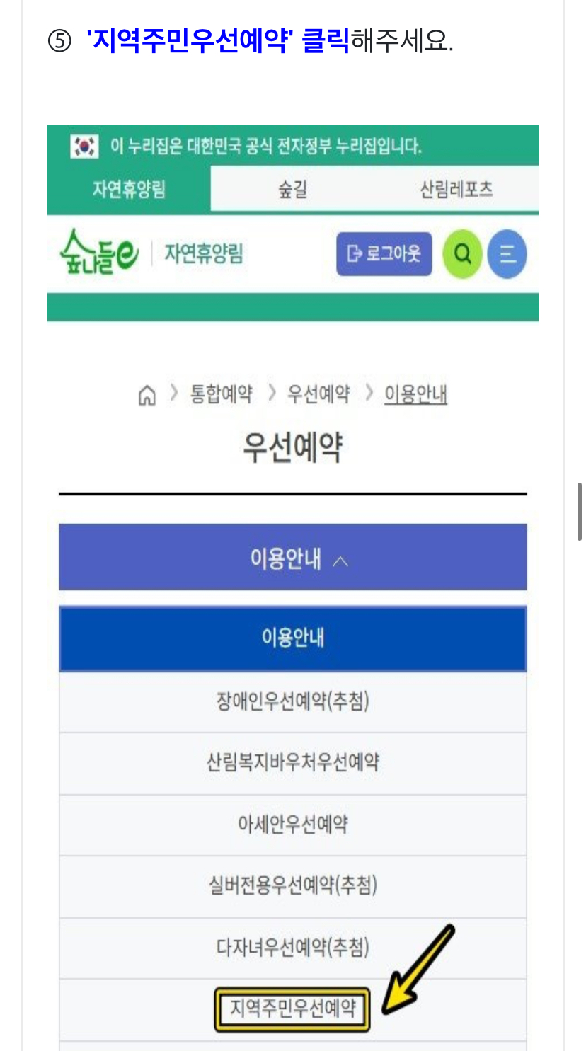 5. 지역주민우선예약 클릭해 주세요.