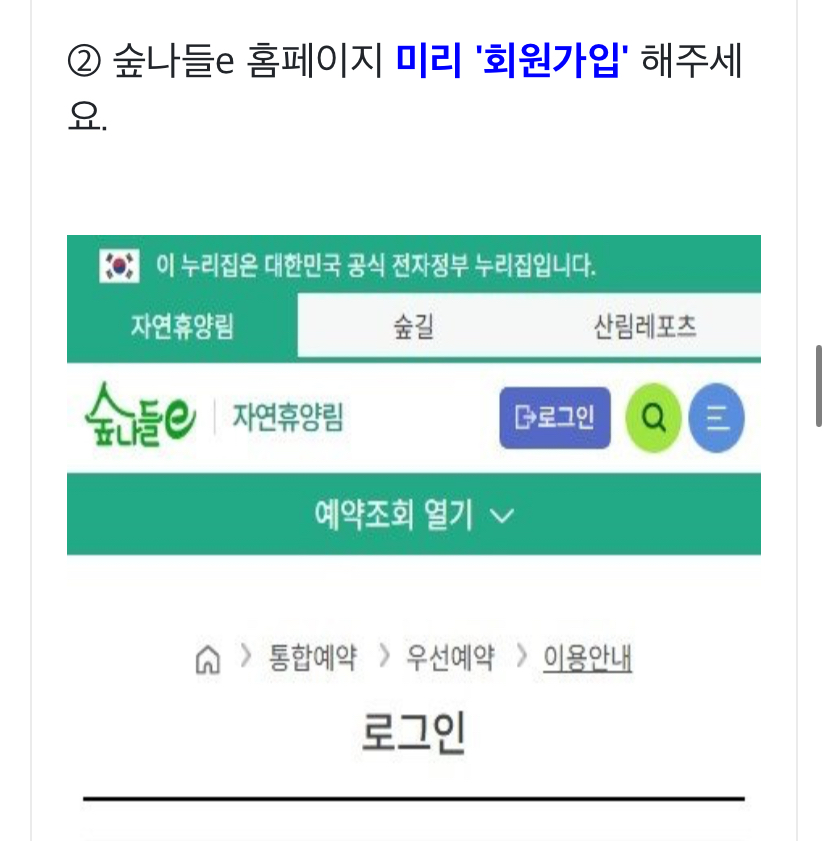 2. 숲나들e 홈페이지 미리 회원가입을 해주세요.