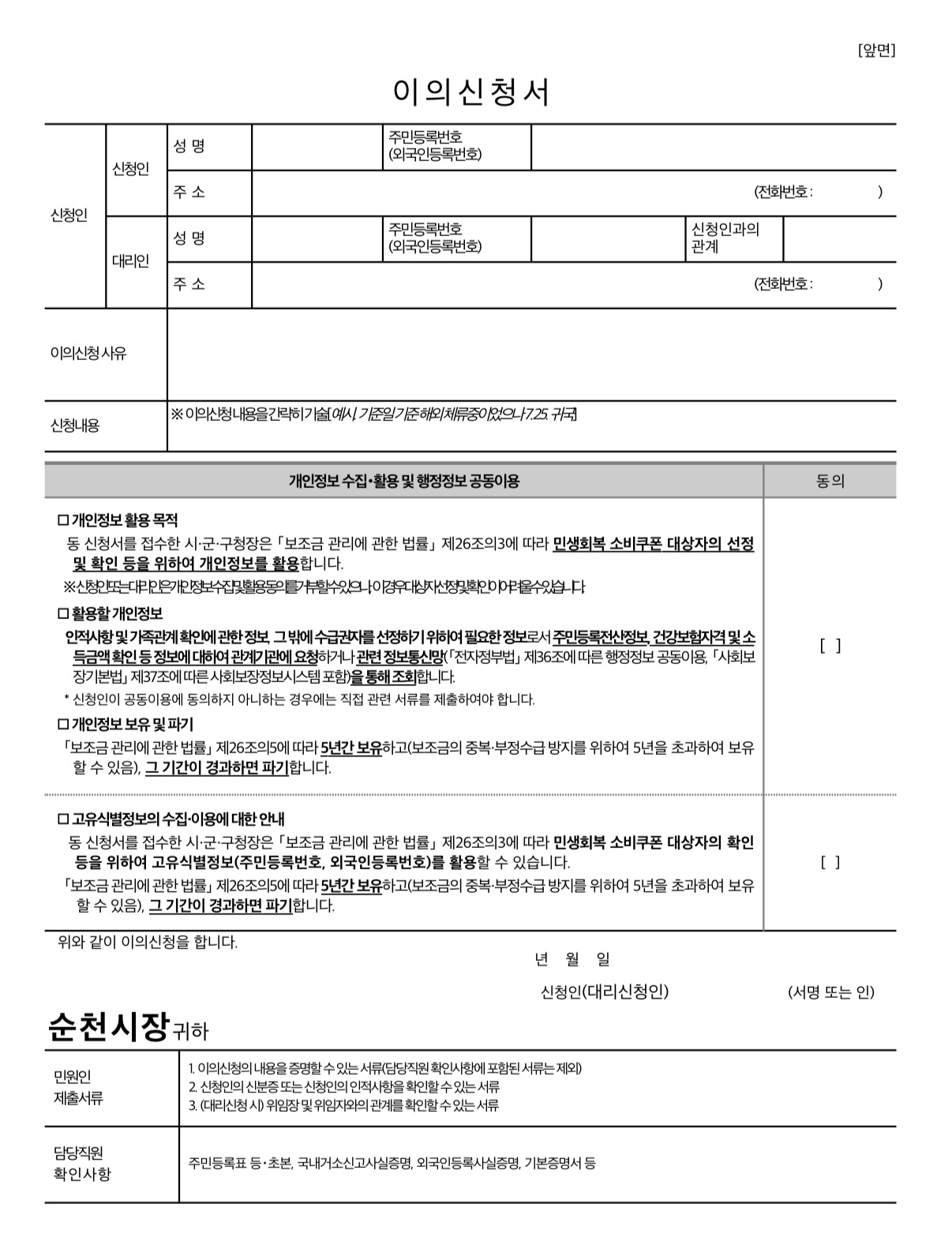 • 신청방법 : 성인 개인별 신청(미성년자는 주민등록 세대주가 신청·수령)