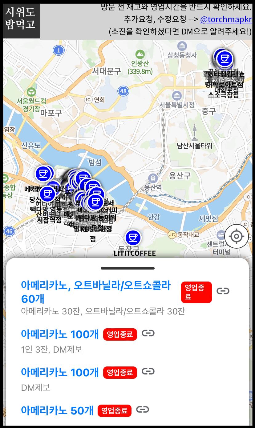 시위도 밥먹고 사이트를 운영하는 운영자는 X에 저희 서비스가 선결제 매장을 찾는 데 쓰이면 좋겠지만, 선결제하실 분들이 어느 매장에서 선결제할지 결정하는 데에도 도움이 됐으면 좋겠다고 했습니다.