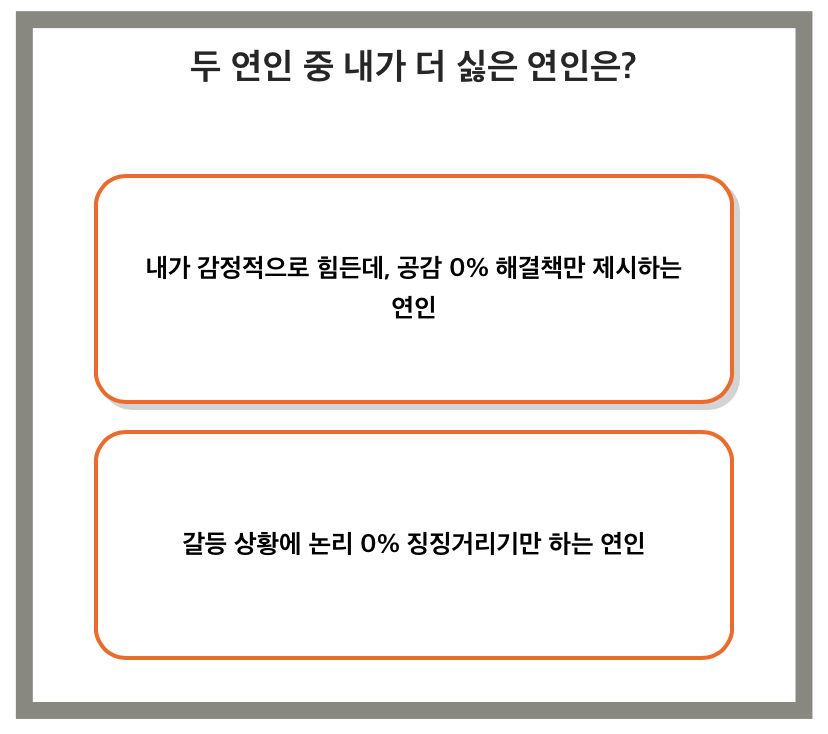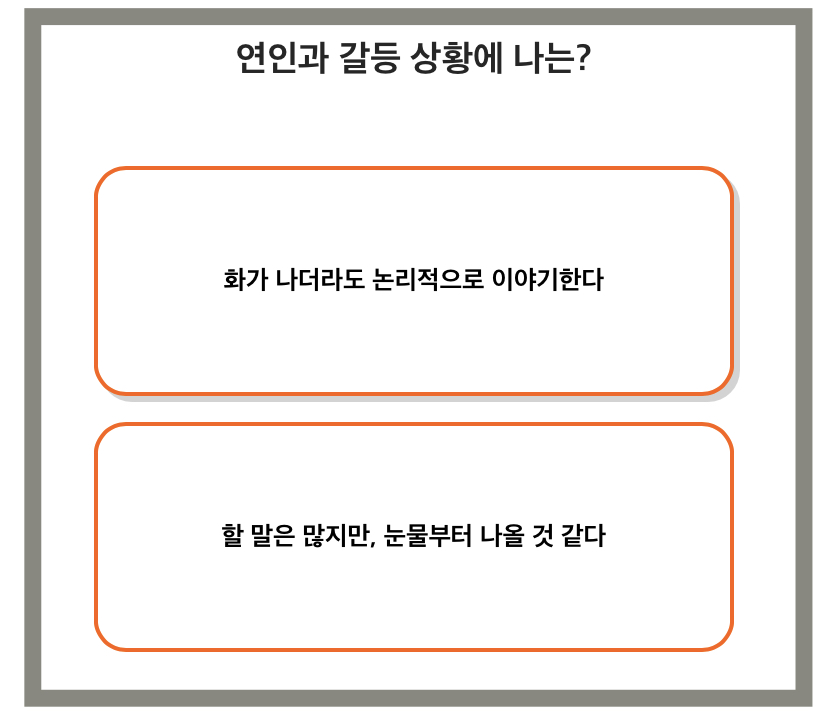 연인과 갈등 상황에서는 논리적으로 얘기하고 싶은 맘은 굴뚝같지만 나꾸 눈물이 눈치없이 흘러나올 것 같습니다.