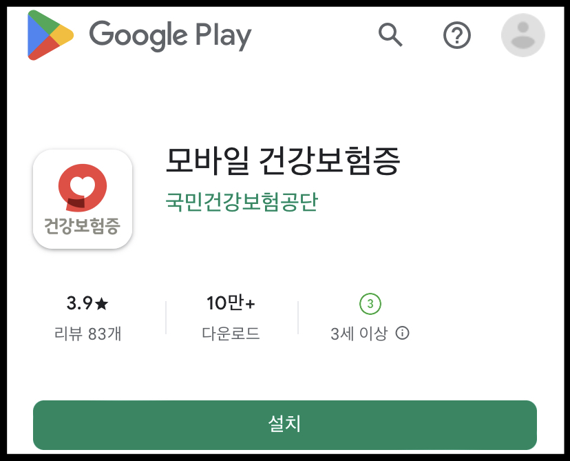 - Play스토어 또는 앱스토어에서 모바일건강보험증을 검색 후 설치합니다.
