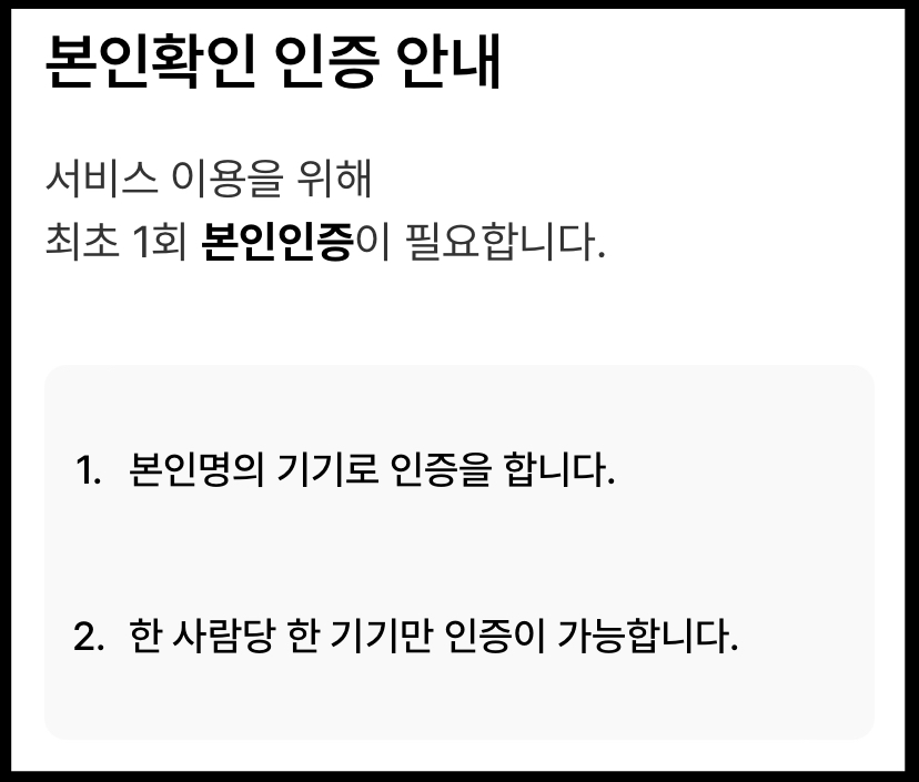 - 설치 후 본인인증 수단 선택하여 인증합니다.