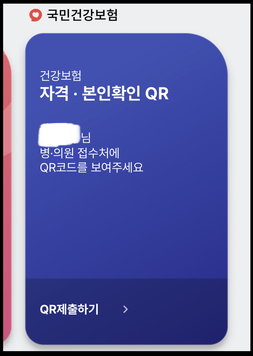 - 모바일 건강보험증 조회 또는 건강보험 자격 본인확인 QR을 요양기관 접수처에 제시합니다.